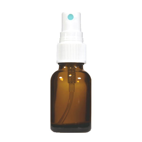 ガラス製遮光ビンのスプレータイプです。プラスチックのフタが付いています。